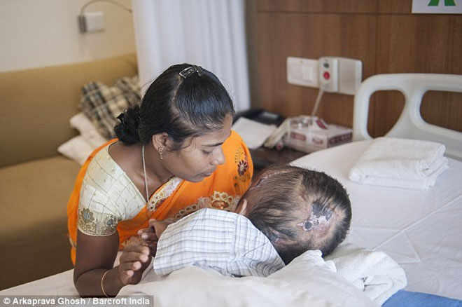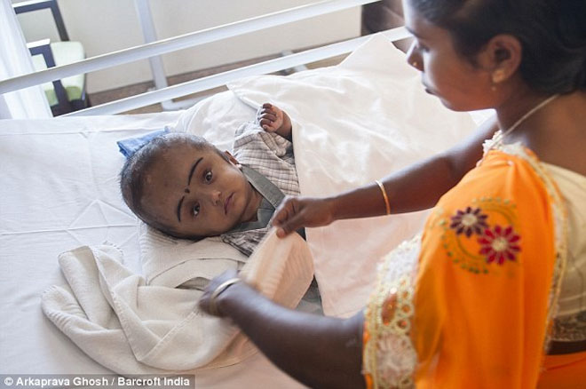Το κοριτσάκι από την Ινδία έχει πια κάθε λόγο να χαμογελά, καθώς το κεφάλι της έχει πλέον φυσιολογικό μέγεθος.