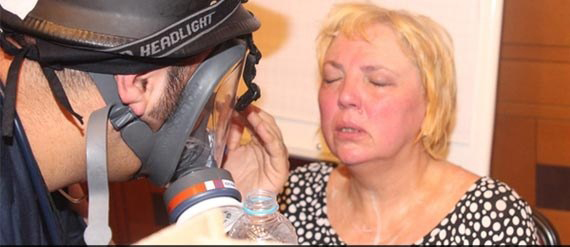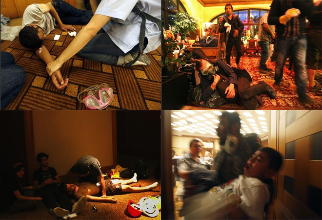 Τα χημικά αέρια όμως εισήλθαν και στο ισόγειο του ξενοδοχείου, με τους ακτιβιστές να έχουν αναγκαστεί να καταλάβουν τις αίθουσες συνεδριάσεων σε άλλους ορόφους. Λόγω ακριβώς της μεγάλης πυκνότητας των αερίων, πολλοί έχουν χάσει τις αισθήσεις τους, ανάμεσά τους και πολλές γυναίκες και παιδιά, ένοικοι του ίδιου του ξενοδοχείου.