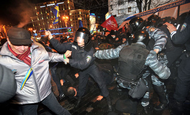 Η σημερινή πορεία στο Κίεβο, με διαφορά η μεγαλύτερη που έχει δει η ουκρανική πρωτεύουσα από την Πορτοκαλί Επανάσταση πριν από εννέα χρόνια, έγινε μία ημέρα μετά την καταστολή από την αστυνομία συγκέντρωσης φιλοευρωπαίων διαδηλωτών νωρίς χθες το πρωί, η οποία επιδείνωσε περαιτέρω το κλίμα που υπήρχε μετά την άρνηση του προέδρου Γιανουκόβιτς να υπογράψει την Παρασκευή μια συμφωνία σύνδεσης με την ΕΕ.