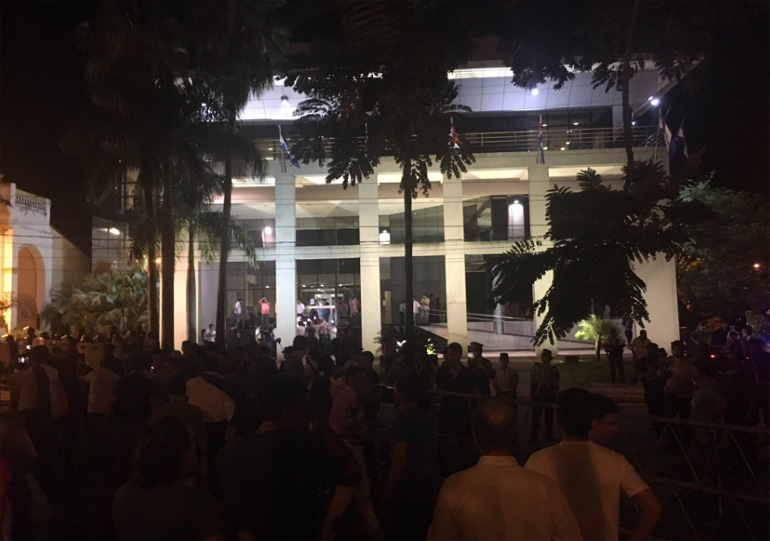 Διαδηλωτές εισέβαλαν στο Κογκρέσο της Παραγουάης και έβαλαν φωτιά στο κτήριο, λίγη ώρα αφού η Γερουσία ενέκρινε, σε μια ψηφοφορία που έγινε μυστικά, μια αναθεώρηση του Συντάγματος που θα επιτρέψει στον πρόεδρο Οράσιο Καρτές να διεκδικήσει την επανεκλογή του στον θώκο.
