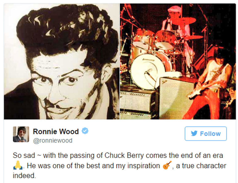 – Ρόνι Γουντ: «Είμαι τόσο θλιμμένος, με τον θάνατο του Τσακ Μπέρι έρχεται το τέλος μιας εποχής. Ήταν ένας από τους καλύτερους, ήταν η έμπνευσή μου, μια αληθινή προσωπικότητα, πραγματικά».