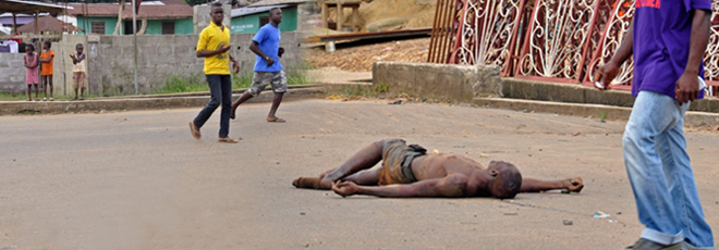 Εν τω μεταξύ εικόνες φρίκης καταγράφουν οι φωτογράφοι των διεθνών πρακτορείων. Σύμφωνα με την Daily Mail, o τρόμος και η έλλειψη παιδείας προκαλούν ακραίες αντιδράσεις στη Λιβερία από την εξάπλωση του ιού. Οι πολίτες, προκειμένου να μην μπουν σε καραντίνα, πετούν τους ετοιμοθάνατους ή νεκρούς συγγενείς τους στον δρόμο. Παράλληλα, έχουν αναφερθεί πολλές περιπτώσεις όπου ασθενείς μολυσμένοι από τον ιό εγκαταλείπονται στη μοίρα τους χωρίς καμία απολύτως βοήθεια.