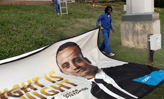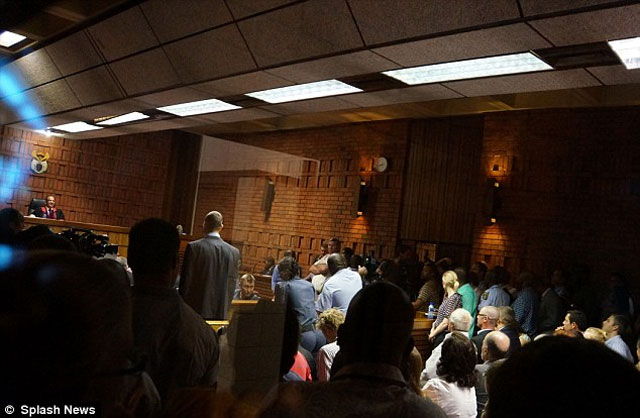 (Περίπου 150 άτομα κατέκλυσαν την αίθουσα του δικαστηρίου. Ανάμεσά τους συγγενείς του Πιστόριους και πολλοί δημοσιογράφοι)