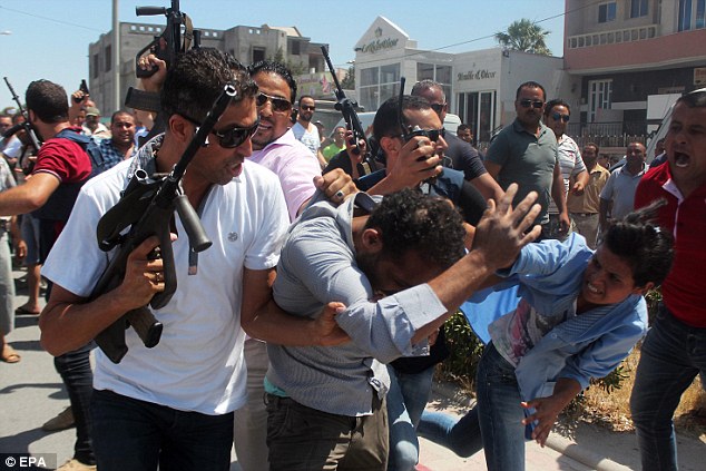 Η αστυνομία λίγες ώρες αργότερα συνέλαβε κάποιον ύποπτο για συμμετοχή στην επίθεση. Στις φωτογραφίες φαίνεται το εξοργισμένο πλήθος που προσπαθεί να τον λιντσάρει: