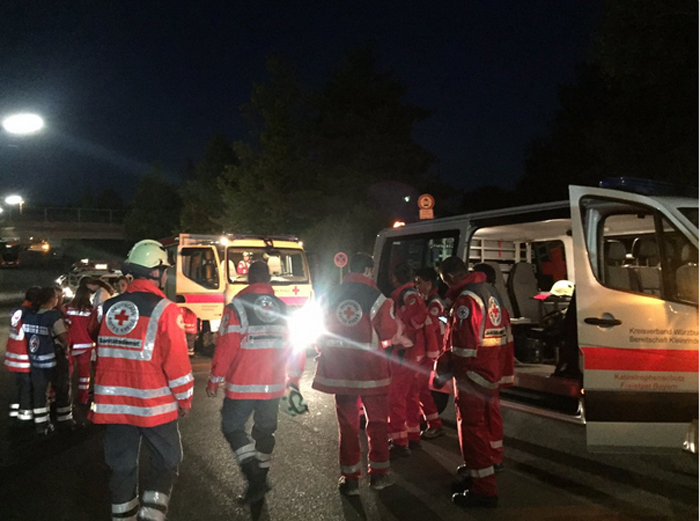 Η εφημερίδα Main Post μεταδίδει ότι οι τραυματίες είναι 21, ενώ άλλα μέσα κάνουν λόγο για 10-15 τραυματίες εκ των οποίων οι τρεις σοβαρά. Σύμφωνα με το ραδιόφωνο Gong, ο δράστης δέχθηκε πυρά από την αστυνομία κατά τη διαφυγή του και έπεσε νεκρός.