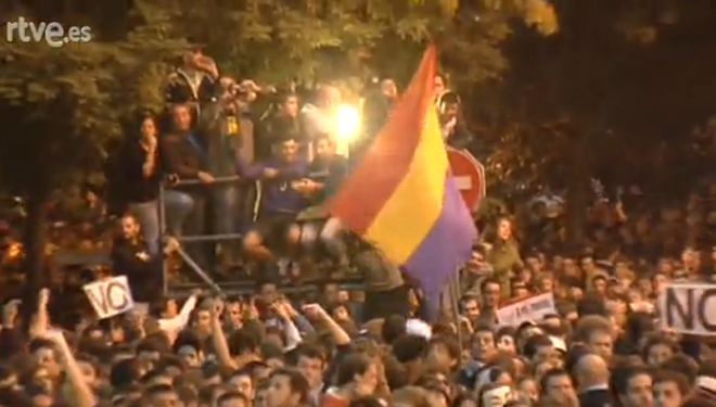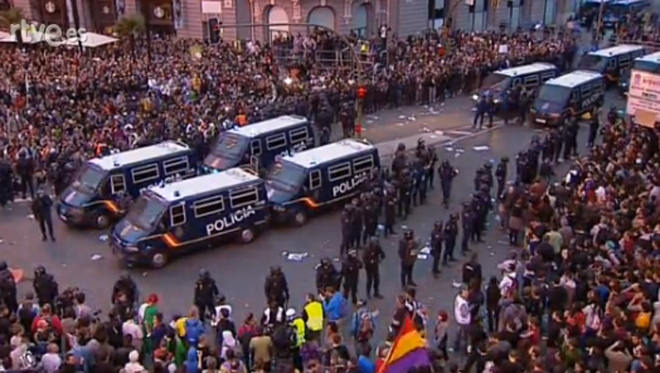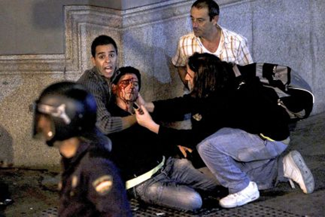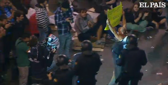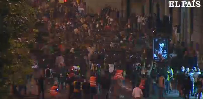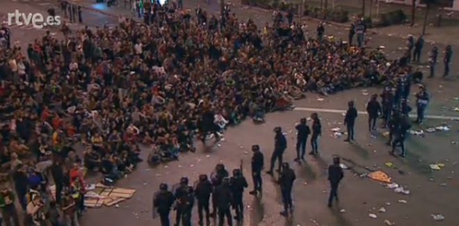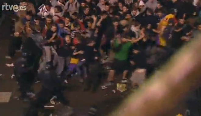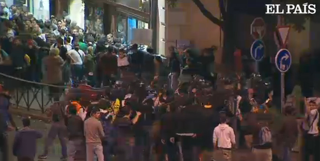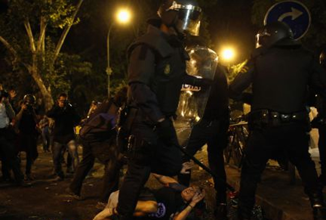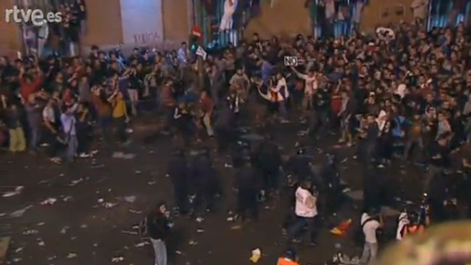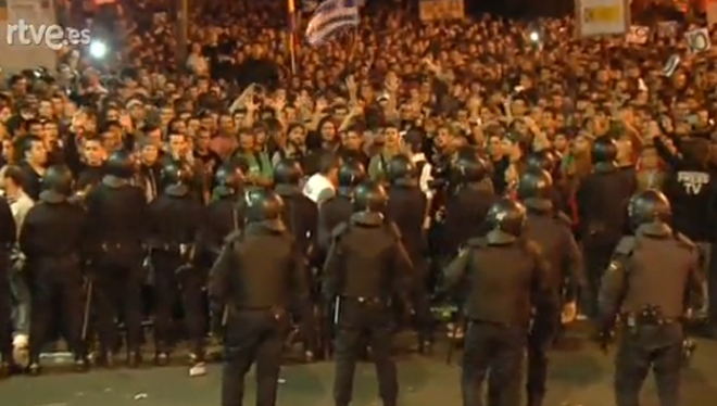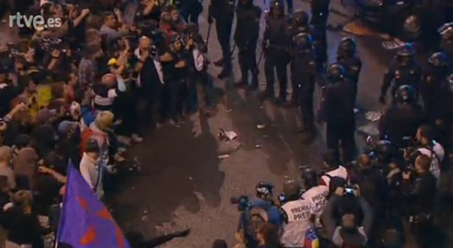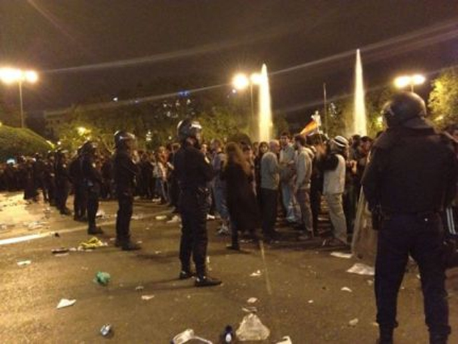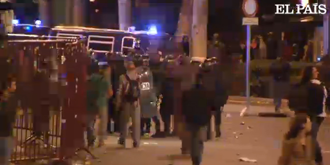 Από αργά το βράδυ της Τρίτης, το τεταμένο κλίμα στο κέντρο της ισπανικής πρωτεύουσας αποκλιμακώθηκε, με τους διαδηλωτές να παραμένουν για αρκετή ώρα απέναντι από τις αστυνομικές δυνάμεις χωρίς να σημειώνονται νέα έκτροπα.