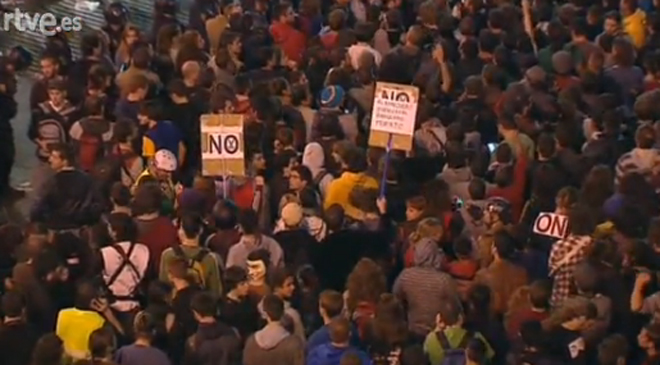Γύρω στους 6.000 διαδηλωτές, σύμφωνα με την ισπανική κυβέρνηση, διαδήλωσαν στη Μαδρίτη κατά των μέτρων λιτότητας της κυβέρνησης Ραχόι, την ίδια ώρα που συνεδρίαζε η ολομέλεια του Κοινοβουλίου. Μαζικές ήταν και οι διαδηλώσεις σε όλες τις μεγάλες πόλεις της Ισπανίας.