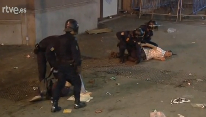 Νωρίτερα, οι αστυνομικοί προσήγαγαν έναν άνδρα ο οποίος είχε αναρριχηθεί στον σιδερένιο φράχτη, κρατώντας μία σημαία του Συνδικάτου Εργαζομένων της Ανδαλουσίας. Στις επιχειρήσεις των δυνάμεων Ασφαλείας συμμετέχουν τουλάχιστον 1.300 άνδρες, ενώ οι 30 από τις συνολικά 52 ομάδες των Μονάδων Αστυνομικής Επέμβασης (UIP) για όλη την Ισπανία έχουν μετακινηθεί στη Μαδρίτη, προκειμένου να «διαφυλάξουν» την τάξη.