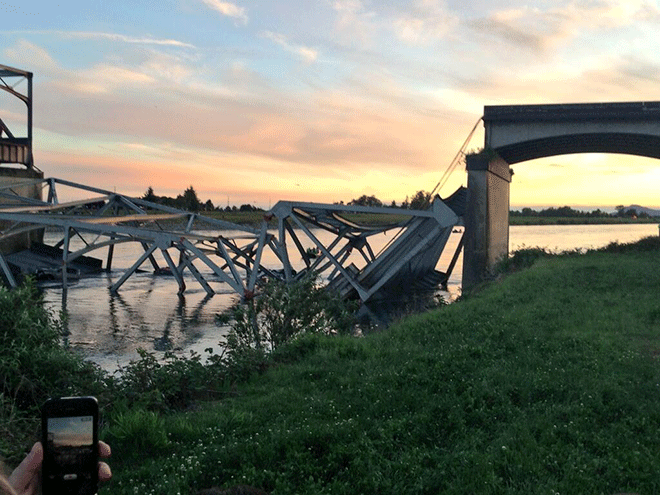 Η γέφυρα, που βρίσκεται σε αγροτική περιοχή 60 μίλια βόρεια του Σιάτλ, είχε κατασκευαστεί το 1955 και αποτελεί τον κύριο οδικό άξονα ανάμεσα στο Σιάτλ και στο Βανκούβερ του Καναδά.