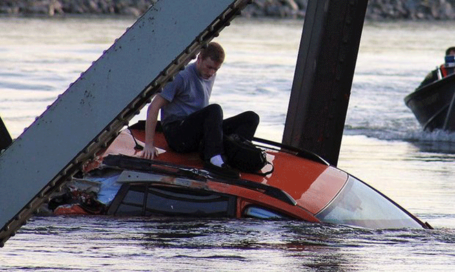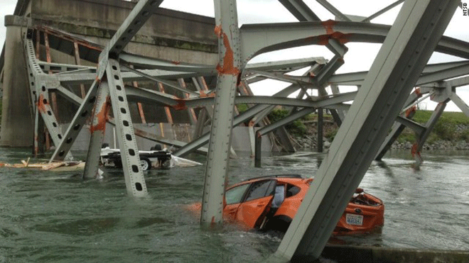 Για άγνωστους μέχρι στιγμής λόγους, κατέρρευσε χθες το απόγευμα μια ακόμα γέφυρα στις ΗΠΑ. Όσοι προσπάθησαν να διασχίσουν χθες τη γέφυρα του διαπολιτειακού σιδηροδρόμου 5 βρέθηκαν ξαφνικά να κολυμπούν στα παγωμένα νερά του ποταμού Σκάτζιτ. Ευτυχώς δεν υπήρξαν θύματα ή σοβαρά τραυματίες.
