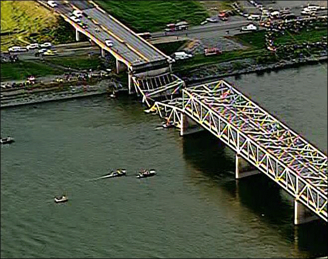Η κατάρρευση σημειώνεται σχεδόν έξι χρόνια αφότου μια άλλη γέφυρα κατέρρευσε στη Μινεσότα και δημιούργησε ανησυχίες για ελαττωματικές υποδομές στις ΗΠΑ. Η κατάρρευση αυτή, τον Αύγουστο του 2007, της γέφυρας I-35W στον ποταμό Μισισιπή κατά τη βραδινή ώρα αιχμής είχε στοιχίσει τη ζωή σε 13 ανθρώπους, ενώ 145 είχαν τραυματισθεί.