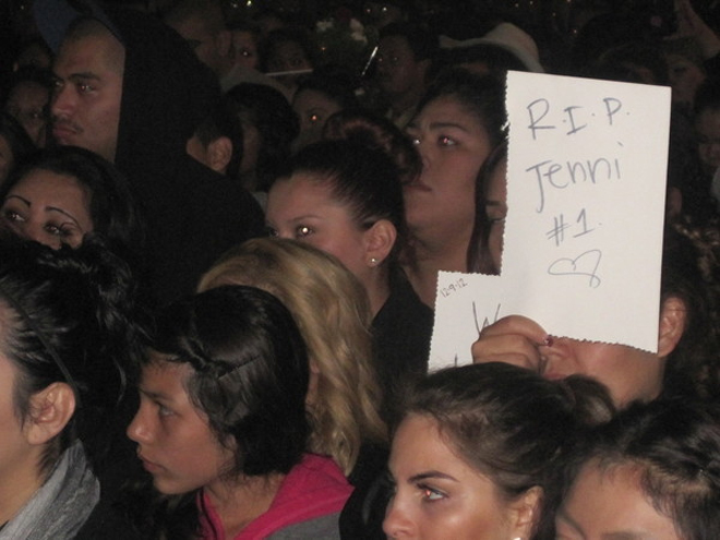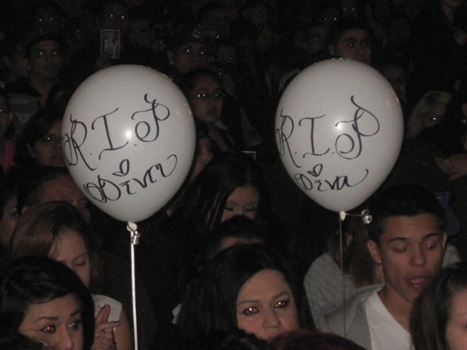Θαυμαστές της Jenni Rivera, λίγο μετά το άκουσμα της είδησης του τραγικού της θανάτου σε αεροπορικό δυστύχημα, κρατώντας κεριά, φωτογραφίες της και λουλούδια έσπευσαν στο Lynwood της Καλιφόρνια για να αποτίσουν φόρο τιμής στη μνήμη της.