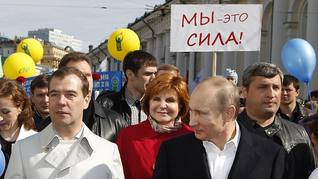 Στη Ρωσία, εθνικιστές, κομουνιστές και αντίπαλοι του Βλαντιμίρ Πούτιν διοργάνωσαν ξεχωριστές πορείες, όπου για πρώτη φορά Πούτιν και Μεντβέντεφ συμμετείχαν σε μεγάλη φιλοκυβερνητική διαδήλωση μαζί με 120.000 συμπολίτες τους στη Μόσχα. Οι δύο άνδρες ενώθηκαν με τους διαδηλωτές στην πλατεία Μανέζ, δύο βήματα από το Κρεμλίνο.