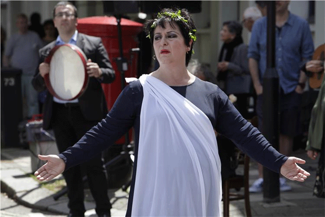 Παράλληλα, ανήμερα της Πεντηκοστής έξω από την εκκλησία της Αγίας Σοφίας στο Λονδίνο παρουσιάστηκε, μια μικρή σε διάρκεια αλλά σημαντική σε ουσία, μουσικό-θεατρική παράσταση σε μουσική του συνθέτη Παντελή Παυλίδη και σκηνοθεσία της Έλντας Πανοπούλου. Όπως εξήγησε ο συνθέτης στο ΑΠΕ – ΜΠΕ «ήταν μια παράσταση βασισμένη σε δικές μου μελωδίες. Το πρώτο κομμάτι ήταν ποίηση από τον Αλκαίο και την Σαπφώ. Το δεύτερο ήταν ένας Ορφικός ύμνος προς τον Απόλλωνα και η τρίτη σύνθεση ήταν ένα οργανικό κομμάτι- κάλεσμα προς την έβδομη Καρυάτιδα που βρίσκεται στο Βρετανικό μουσείο. Σκοπός μας είναι να αφυπνιστούν οι συνειδήσεις ώστε κάποια στιγμή να γίνει αίτημα όλων η επιστροφή των Γλυπτών του Παρθενώνα στο τόπο τους».