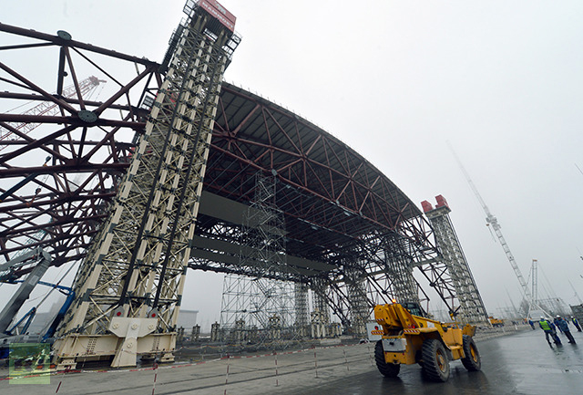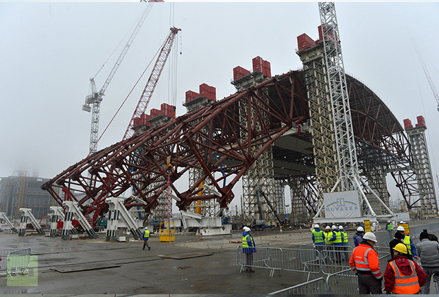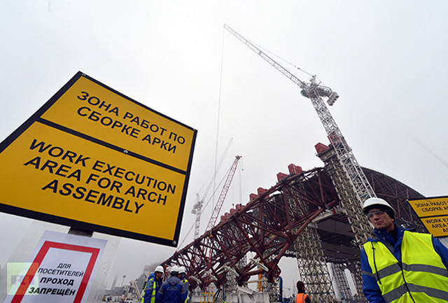 Οι εικόνες που μετέδωσε την Πέμπτη το ρωσικό τηλεοπτικό δίκτυο RT είναι άκρως εντυπωσιακές, μετά την ολοκλήρωση των εργασιών συναρμολόγησης μιας εκ των αψίδων του κεντρικού σκελετού. Το νέο «κέλυφος» που θα σκεπάσει τον αντιδραστήρα κατασκευάζεται μόλις 200 μέτρα από την υπάρχουσα σαρκοφάγο, η οποία έχει υποστεί φθορές με το πέρασμα των χρόνων, εγκυμονώντας μακροπρόθεσμα κινδύνους για τη δημόσια υγεία.