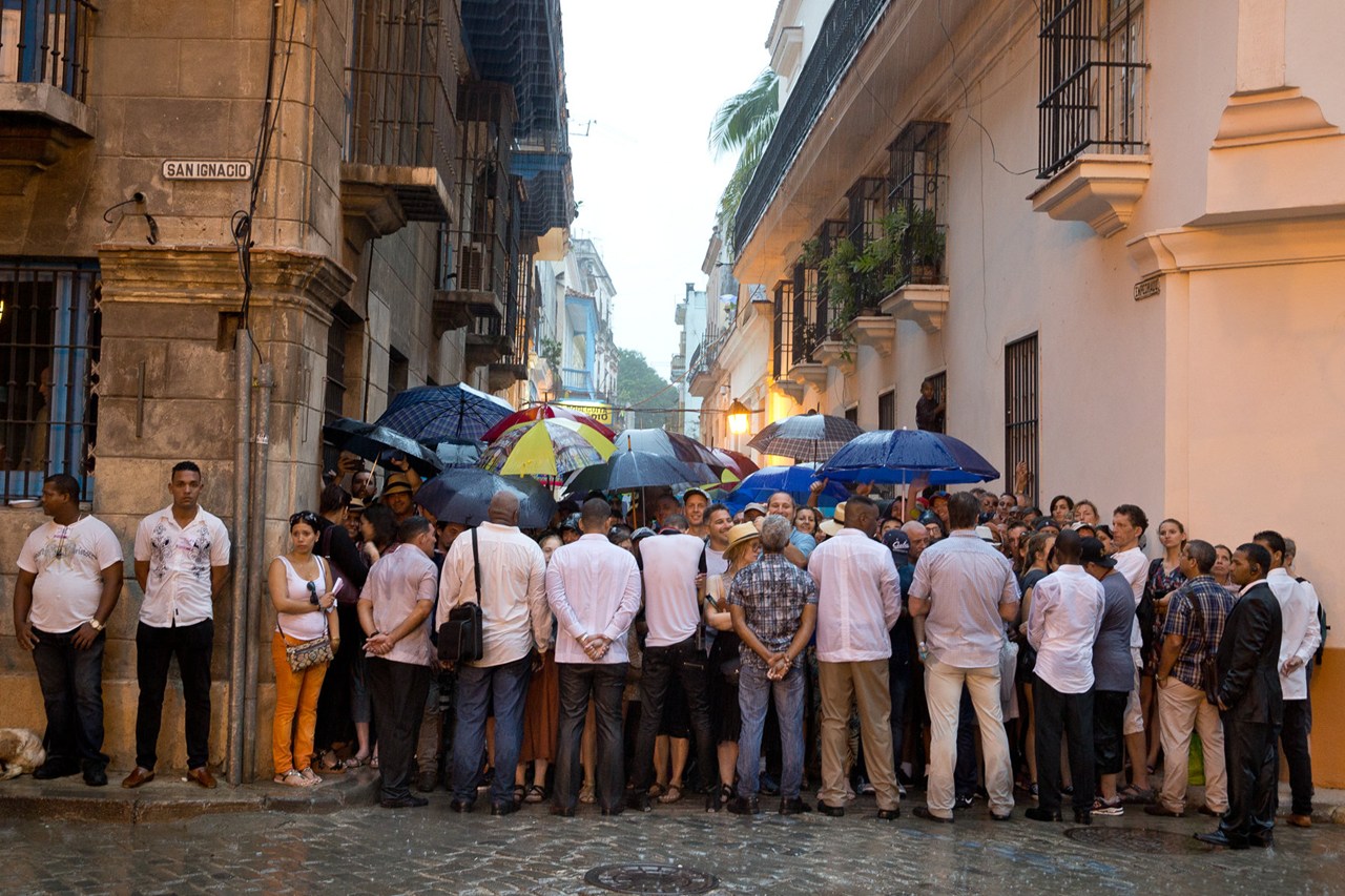 Πίσω από τις σειρές αστυνομικών που περιφρουρούσαν την πορεία είχαν σχηματιστεί ομάδες Κουβανών που προσπαθούσαν να δουν τον Ομπάμα και να τραβήξουν φωτογραφίες, αρκετοί κρατώντας αμερικανικές σημαίες.