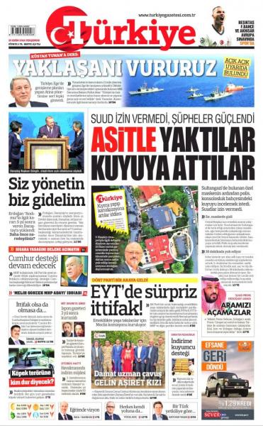 Από τη μεριά της, η Τurkiye τιτλοφορεί το εμπρηστικό της άρθρο: «Μάθημα στον προκλητικό Έλληνα. Θα χτυπάμε όποιον πλησιάσει».