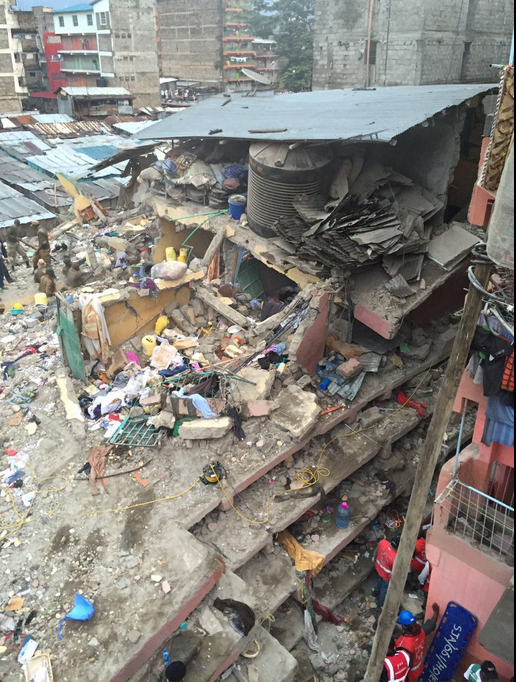 Η Σιούντου ανέφερε ότι το κτήριο κατέρρευσε στις 21:30 (τοπική ώρα και ώρα Ελλάδας) στη λαϊκή γειτονιά Χουρούμα του βορειοανατολικού Ναϊρόμπι, την οποία έπληξαν χθες οι πιο σφοδρές βροχοπτώσεις από την έναρξη της περιόδου των βροχών.