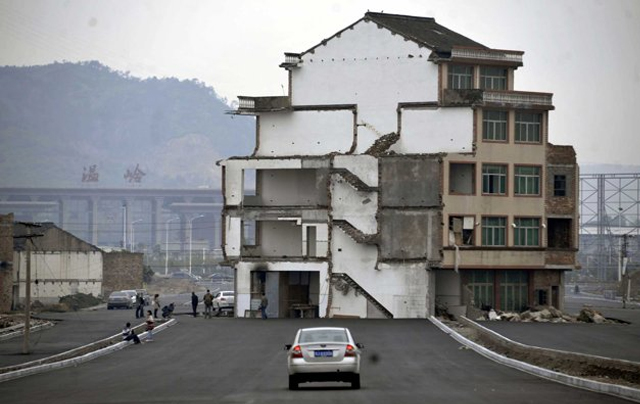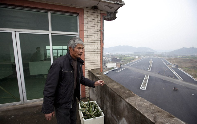 Το απίστευτο περιστατικό σημειώθηκε στην πόλη Γουενλίνγκ της επαρχίας Ζεγιάνγκ. Το ζευγάρι είναι οι τελευταίοι των… κατοίκων συνοικίας που κατεδαφίστηκε προκειμένου να περάσει από εκεί ο δρόμος, που οδηγεί σ’ έναν υπερσύγχρονο σιδηροδρομικό σταθμό στα προάστια της πόλης. Όπως τόνισε ο Luo Baogen το κράτος τού πρόσφερε πολύ λιγότερα από τα 600.000 γιουάν (60.000 δολάρια) που ξόδεψε προκειμένου να κατασκευάσει το σπίτι του, επομένως δεν μπορούσε σε καμία περίπτωση να δεχτεί τη συγκεκριμένη πρόταση.