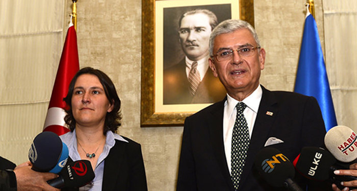 Ο Τούρκος υπουργός Ευρωπαϊκών Υποθέσεων, Βολκάν Μποζκίρ, συναντήθηκε με την εισηγήτρια της Έκθεσης Προόδου για την Τουρκία, Κάτι Πίρι στο γραφείο του στην Κωνσταντινούπολη.