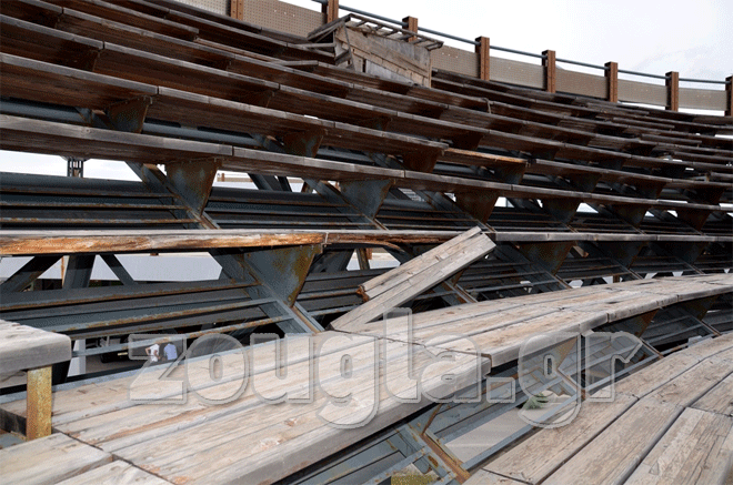 Τα περισσότερα καθίσματα των θεατών είναι σπασμένα, ο εξωτερικός χώρος έχει μετατραπεί σε «πάρκινγκ» για τα σκάφη του Λιμενικού, ενώ στα ενδότερα των εγκαταστάσεων κυριαρχεί… χάος!