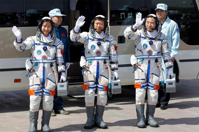 Το κινεζικό διαστημόπλοιο «Shenzhou 9» τέθηκε σε τροχιά το μεσημέρι του Σαββάτου από το διαστημικό κέντρο του Ζιουκουάν στην έρημο Γκόμπι της βόρειας Κίνας.