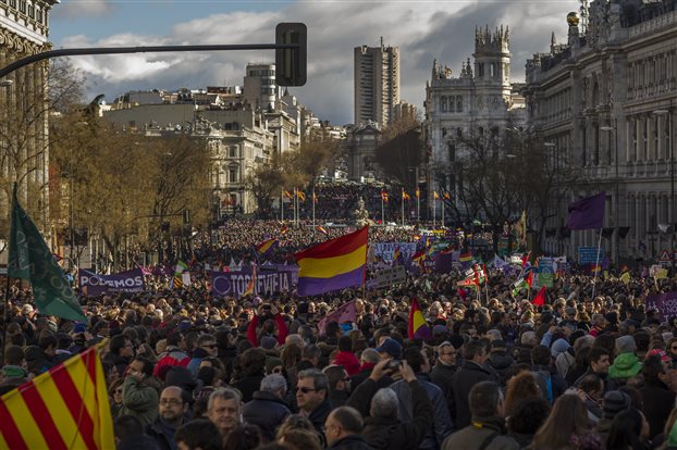 Μαζική πορεία στο κέντρο της Μαδρίτης πραγματοποιούν οι Ποδέμος, επενδύοντας στην πρόσφατη νίκη του ΣΥΡΙΖΑ στην Ελλάδα. Δεκάδες χιλιάδες διαδηλωτές συμμετέχουν στην «Πορεία για την Αλλαγή» – μια από τις πρώτες μαζικές κινητοποιήσεις του ισπανικού αριστερού κόμματος στους δρόμους.