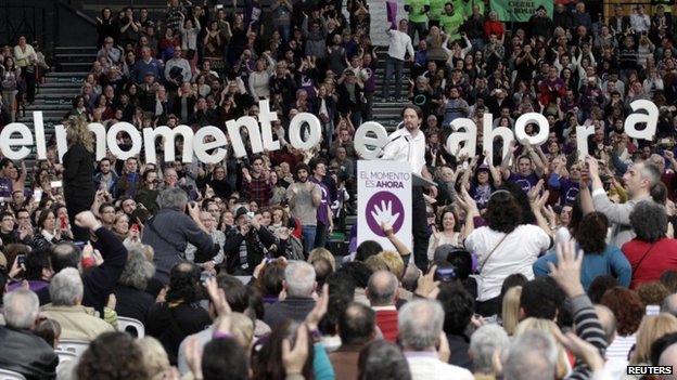 Ο απεσταλμένος του BBC υπενθυμίζει ότι «οι Ποδέμος εισέβαλαν στην πολιτική σκηνή στις Ευρωεκλογές του περασμένου Μαΐου και έκτοτε ολοένα δυναμώνουν, εμμένοντας στο ασυμβίβαστο μήνυμά τους ενάντια στη λιτότητα και στη διαφθορά. Οι Ποδέμος είναι, επίσης, στενοί σύμμαχοι του ΣΥΡΙΖΑ και οι πολιτικές που θέλουν να εφαρμόσουν το ίδιο ριζοσπαστικές. Με τη σημερινή πορεία στην περίφημη πλατεία Πουέρτα δελ Σολ (Πύλη του Ηλίου) το κόμμα φιλοδοξεί να στείλει ένα μήνυμα στα παραδοσιακά ισπανικά κόμματα, υπό το βλέμμα και της υπόλοιπης Ευρώπης».