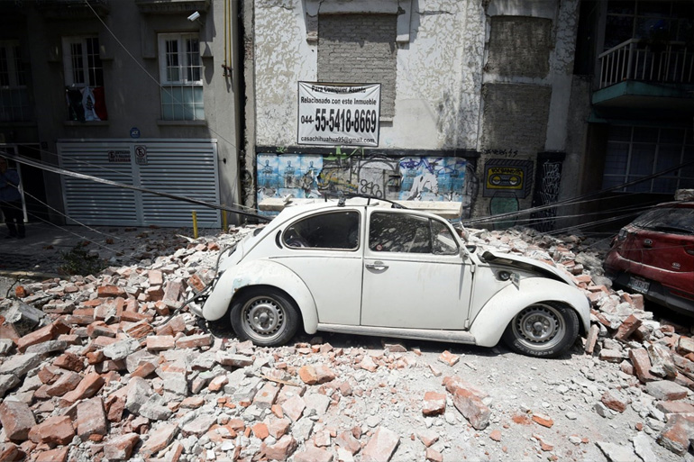 Εικόνες που μεταδόθηκαν στην μεξικανική τηλεόραση και σε μέσα κοινωνικής δικτύωσης δείχνουν κτίρια να έχουν καταρρεύσει και αυτοκίνητα καταπλακωμένα από συντρίμμια.