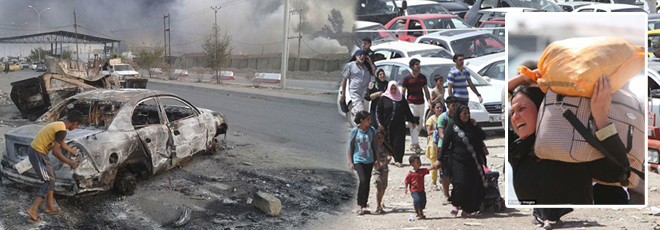 Κύμα εκτοπισμένων πυροδοτεί η κατάληψη της Μοσούλης, της δεύτερης μεγαλύτερης πόλης του Ιράκ, από τους τζιχανιστές της ISIL. Τα διεθνή δίκτυα αναφέρουν πως μισό εκατομμύριο άνθρωποι εγκαταλείπουν την πόλη με κάθε μέσo, παίρνοντας μαζί τους μόνο τα απολύτως απαραίτητα, ενώ η κεντρική κυβέρνηση της Βαγδάτης μοιάζει ανήμπορη απέναντι στη μάχη με τους ισλαμιστές.