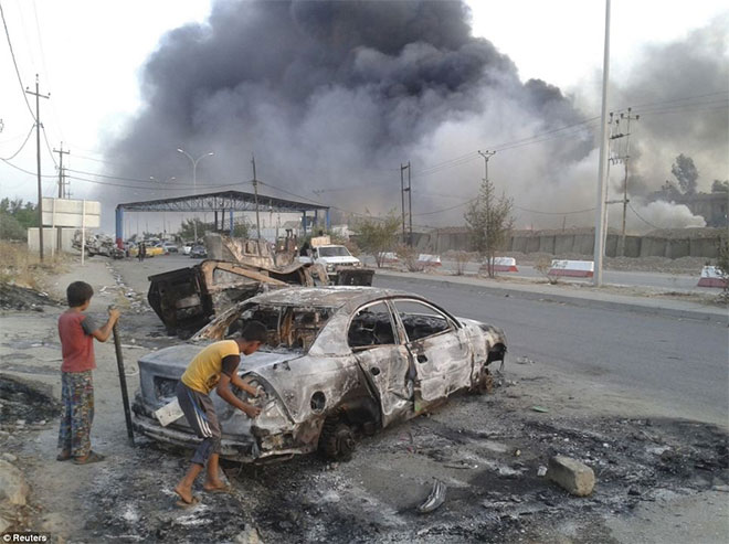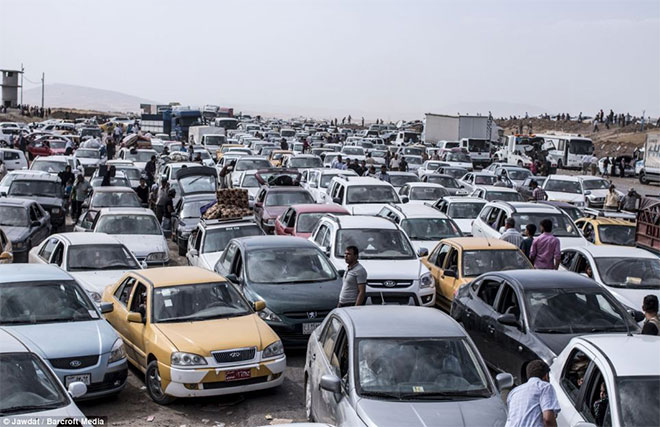Στη Μοσούλη επικρατούν χαοτικές σκηνές, με τους κατοίκους να προσπαθούν να φύγουν με κάθε μέσο και διασώζοντας όσα υπάρχοντά τους μπορούν, με φόντο τις μαύρες σημαίες που έχουν υψώσει στα κτίρια οι ένοπλοι της ISIL.