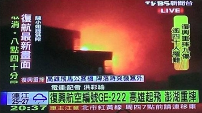 Τουλάχιστον 47 επιβαίνοντες έχασαν τη ζωή τους όταν αεροπλάνο της TransAsia Airways επιχείρησε αναγκαστική προσγείωση, δύο συνεχόμενες φορές, σε κατοικημένη περιοχή της πόλης Μαγκόνγκ των νήσων Πενγκχού στην Ταϊβάν. Τη δεύτερη φορά το στίγμα του αεροσκάφους ATR-72 εξαφανίστηκε από τα ραντάρ. Επίσημη αναφορά από το υπουργείο μεταφορών κάνει λόγο για 47 νεκρούς και 11 τραυματίες, ενώ ξένα μέσα ενημέρωσης μεταδίδουν ότι οι νεκροί ξεπέρασαν τους 50.