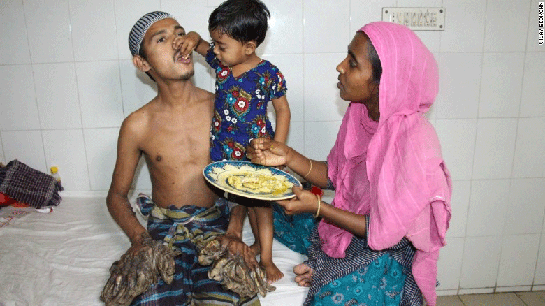 Τα χέρια του έμοιαζαν με κλαδιά δέντρου και έχουν αντικαταστήσει τα δάχτυλά του, με αποτέλεσμα να μην μπορεί να αυτοεξυπηρετηθεί.