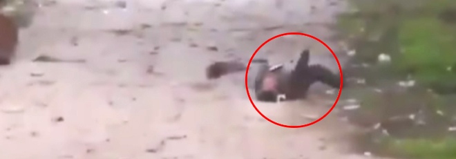 Ο ανταποκριτής του Al Jazeera πέφτει στο έδαφος και σφαδάζει χτυπημένος από τις σφαίρες. Ο καμεραμάν μαγνητοσκοπεί το τελευταίο ρεπορτάζ του συνεργάτη του.