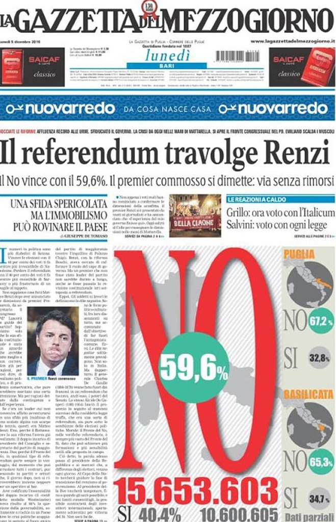 La Gazzeta del Mezzogiorno: «Το δημοψήφισμα συγκλονίζει τον Ρέντσι»