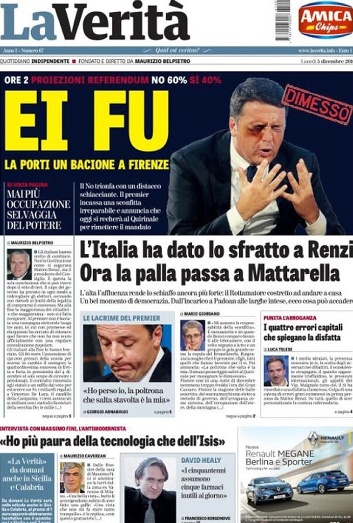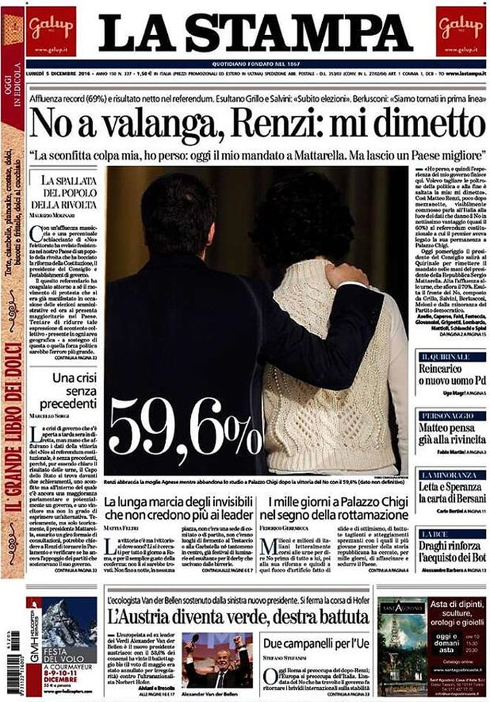 La Stampa: «Η χιονοστιβάδα του ΟΧΙ, Ρέντσι: Παραιτούμαι»