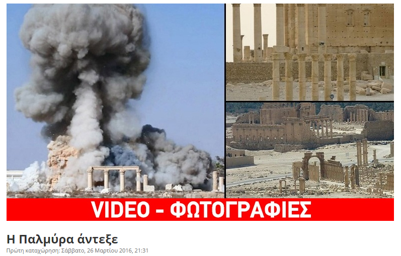 Η ανακατάληψη της Παλμύρας από τις δυνάμεις του κυβερνητικού στρατού στη Συρία αντιμετωπίστηκε από τα διεθνή ΜΜΕ ως μια σημαντική εξέλιξη στον πόλεμο κατά του Ισλαμικού Χαλιφάτου. Η εμβληματική πόλη βρίσκεται σε στρατηγική θέση, καθώς επιτρέπει τον έλεγχο των μετακινήσεων από και προς το κεντρικό τμήμα της χώρας.