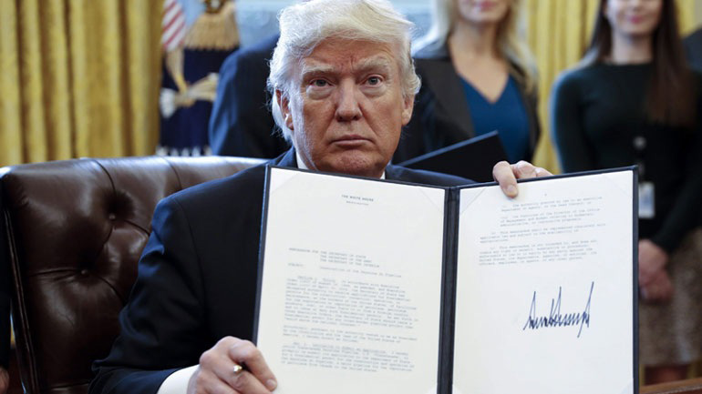 Ο Αμερικανός πρόεδρος υπέγραψε σήμερα τις πράξεις νομοθετικού περιεχομένου για να προωθήσει την κατασκευή δύο αμφιλεγόμενων πετρελαϊκών αγωγών