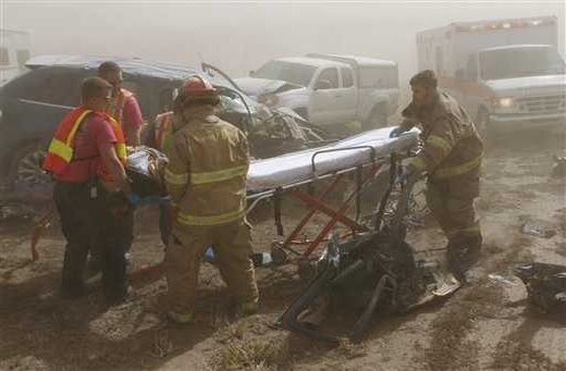 Εκπρόσωπος της Αστυνομίας τόνισε σε δηλώσεις του στο Associated Press πως τουλάχιστον 27 οχήματα συγκρούστηκαν μεταξύ τους λόγω περιορισμένης ορατότητας των οδηγών τους από την ισχυρή ανεμοθύελλα, η οποία έκανε ξαφνικά την εμφάνισή της σε τμήμα του αυτοκινητοδρόμου «Interstate 35» στην επαρχία Κάι. Ελάχιστα λεπτά μετά το τροχαίο προκλήθηκε κομφούζιο καθώς ο δρόμος είχε γεμίσει συντρίμμια εν μέσω αποπνικτικής ατμόσφαιρας.