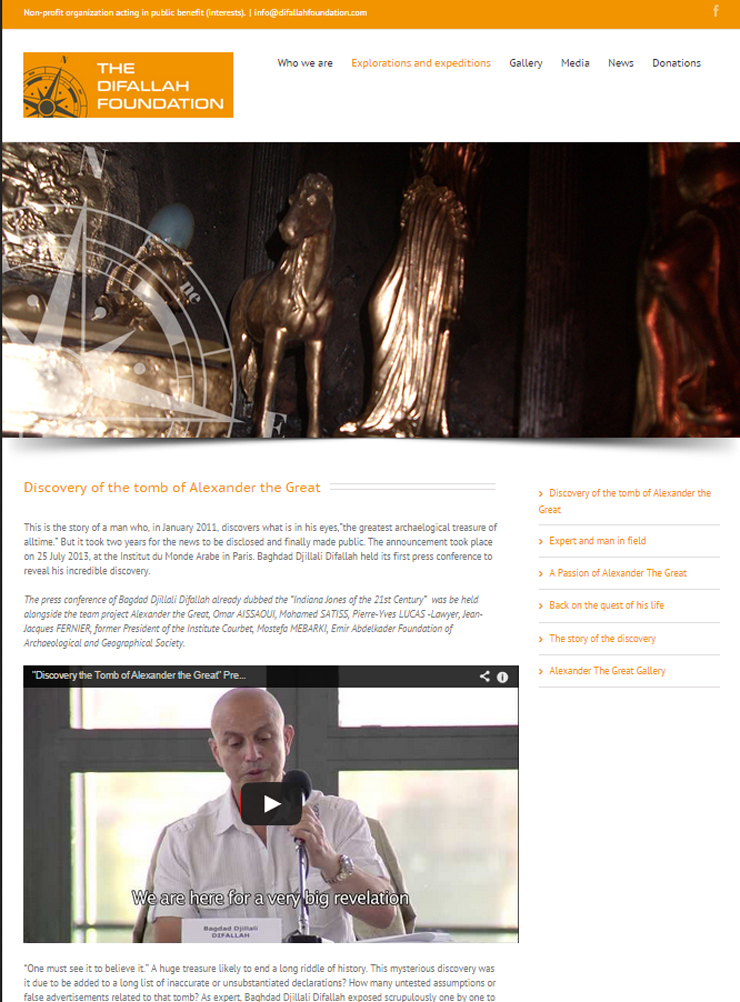 Όπως προέκυψε από το ρεπορτάζ του zougla.gr, υπάρχει όντως ένα ίδρυμα με το όνομα Difallah faoundation. Την ιστοσελίδα του μπορεί να τη βρει ο καθένας στο Διαδίκτυο. Σε μια ενότητα υπάρχει ο τίτλος «Η ανακάλυψη του τάφου του Μεγάλου Αλεξάνδρου».
