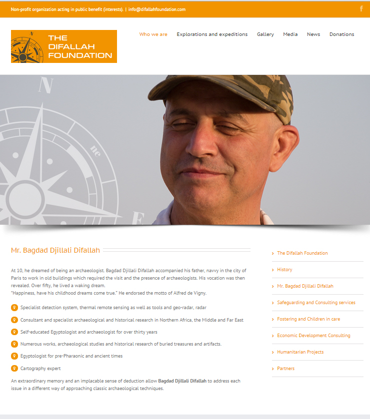 Ο Bagdad Djillali Difallah εμφανίζεται ως ειδικός σε συστήματα ανίχνευσης, θερμικής τηλεπισκόπησης, και σε γεωραντάρ, ενώ είναι σύμβουλος και ειδικός στην αρχαιολογία και την ιστορική έρευνα στη Βόρεια Αφρική, τη Μέση και την Άπω Ανατολή.