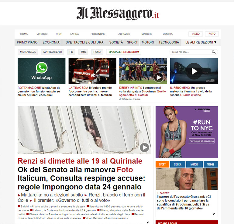 Το πρωτοσέλιδος της ηλεκτρονικής εφημερίδας Il Messaggero: « Ο Ρέντσι παραιτείται στις 19.00»