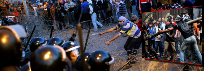Συγκρούσεις σημειώθηκαν μεταξύ των δυνάμεων ασφαλείας και νεαρών διαδηλωτών στους δρόμους γύρω από την πλατεία Ταχρίρ. Τα επεισόδια είχαν αρχίσει από το πρωί με πετροπόλεμο, μολότοφ και δακρυγόνα.