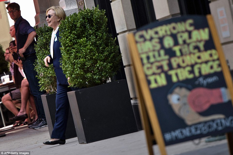 Λίγες ώρες μετά την αναγκαστική αποχώρηση από την εκδήλωση για την 11η Σεπτεμβρίου, η Χίλαρι Κλίντον εξήλθε από το διαμέρισμα της κόρης της στη Ν. Υόρκη δηλώνοντας στους δημοσιογράφους ότι είναι καλά. Απέφυγε, ωστόσο, να αναφερθεί στο πρόβλημα υγείας που αντιμετωπίζει, λέγοντας απλώς ότι «είναι μια όμορφη μέρα στη Νέα Υόρκη».