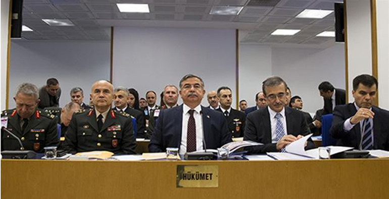 Σε δηλώσεις του ο Τούρκος υπουργός Άμυνας İsmet Yılmaz (στο κέντρο της φωτογραφίας) αρνήθηκε πως Τούρκοι στρατιώτες πέρασαν τα σύνορα με τη Συρία το Σαββατοκύριακο και διαβεβαίωσε ότι η Άγκυρα «δεν σκέφτεται να στείλει στρατεύματα στη γειτονική χώρα».