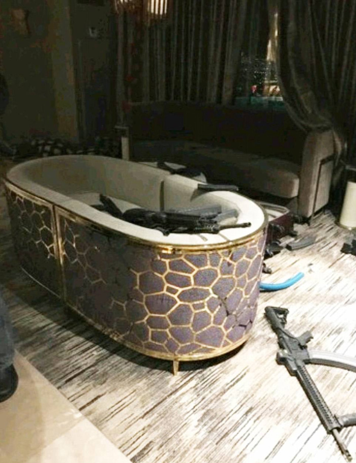Σε φωτογραφίες-ντοκουμέντο που δημοσιοποιούν τα ξένα Μέσα φαίνεται το δωμάτιο του ξενοδοχείου που ο «μακελάρης» μετέτρεψε σε μικρό οπλοστάσιο. Ενδεικτικά, εμφανίζονται καθαρά τα δύο από τα 23 όπλα που χρησιμοποίησε ο 64χρονος για να σκοτώσει άτομα από το συγκεντρωμένο πλήθος που παρακολουθούσε ανυποψίαστο το φεστιβάλ.