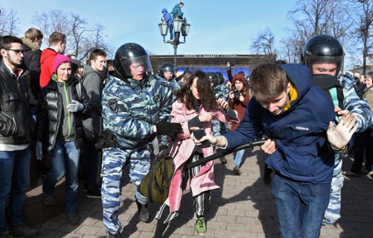 Η ρωσική αστυνομία προσήγαγε τουλάχιστον 700 ανθρώπους την Κυριακή κατά τη διάρκεια μιας διαδήλωσης κατά της διαφθοράς, όπου συμμετείχαν χιλιάδες άνθρωποι στο κέντρο της Μόσχας, οι οποίοι ανταπροκρίθηκαν στο κάλεσμα του επικριτή του Κρεμλίνου Αλεξέι Ναβάλνι, έγινε γνωστό από την οργάνωση OVD-Info, που παρακολουθεί τις διαδηλώσεις.