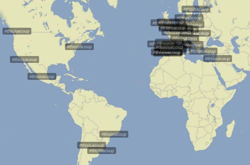 Χιλιάδες πολίτες από όλο τον κόσμο χρησιμοποιούν το twitter με το hashtag (που καθορίζει την τάση της θεματολογίας και του φλέγοντος ζητήματος για το οποίο συζητούν οι χρήστες) #ThisIsACoup , που σημαίνει «Αυτό είναι Πραξικόπημα».