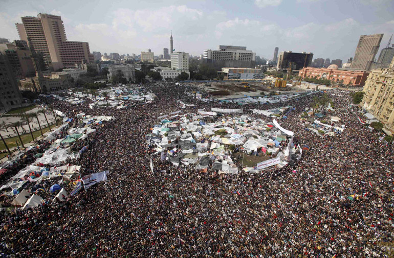 Έτσι, με το σύνθημα «αλλαγή εδώ και τώρα», οι πολυπληθείς διαμαρτυρίες οδήγησαν στην καθαίρεση του προέδρου Χόσνι Μουμπάρακ.