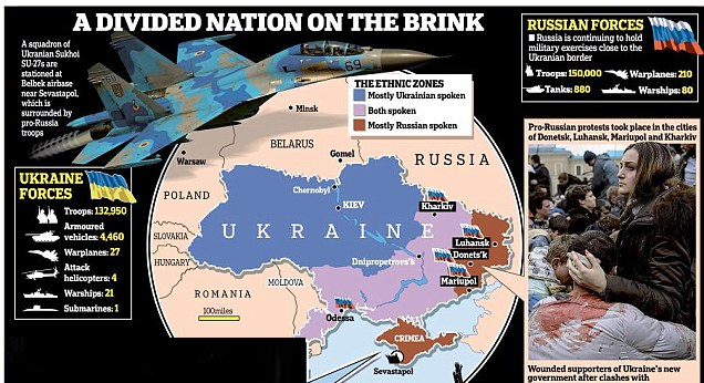 Ο πρωθυπουργός της Ουκρανίας Αρσένι Γιατσένιουκ διεμήνυσε ότι «η Μόσχα έχει κηρύξει τον πόλεμο» στη χώρα του, την ώρα που ο πρόεδρος της Ρωσίας Βλαντίμιρ Πούτιν τηρεί στάση αναμονής, δηλώνοντας παράλληλα ανυποχώρητος.